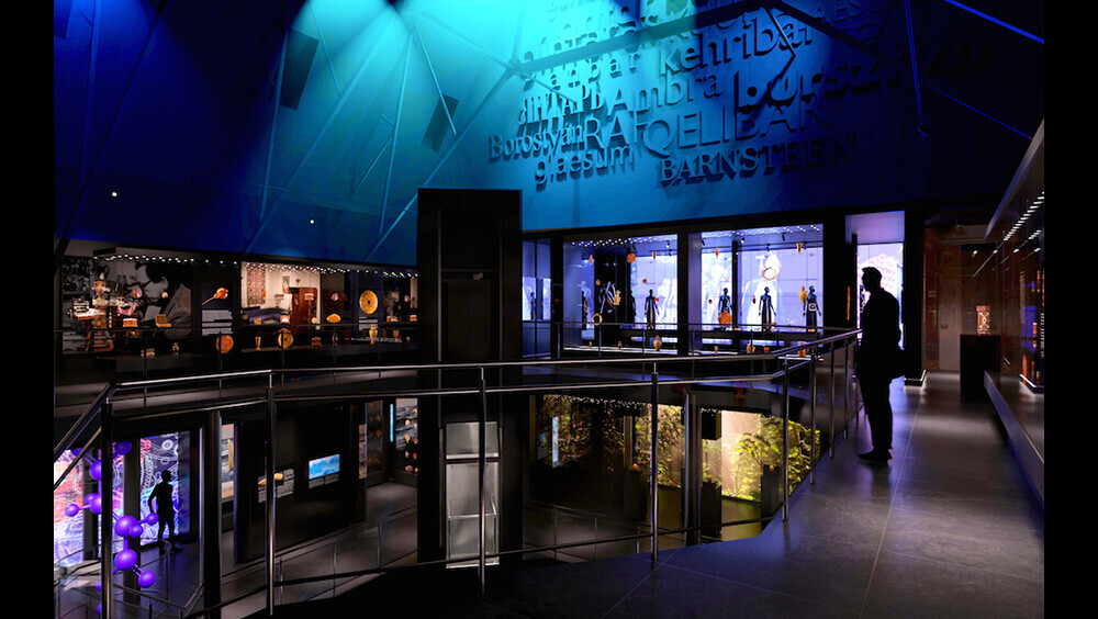 Widok ogólny na poziomie drugim w nowym Muzeum Bursztynu