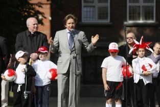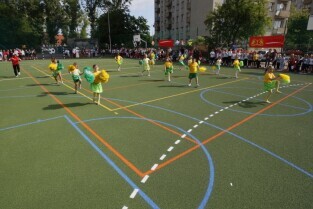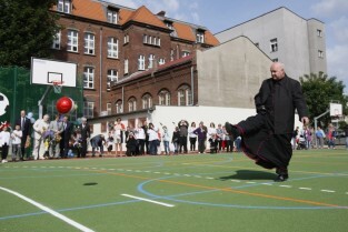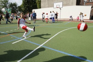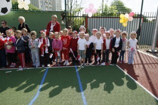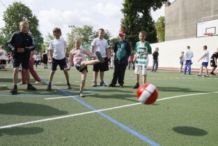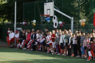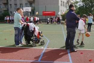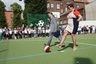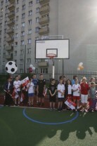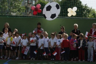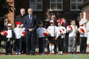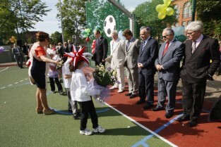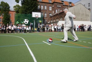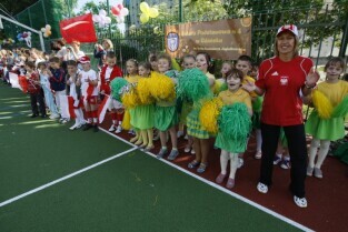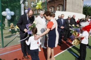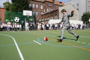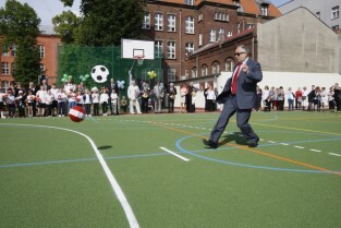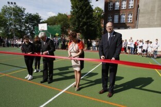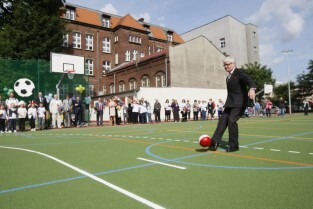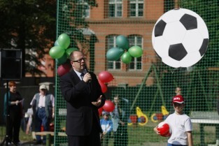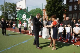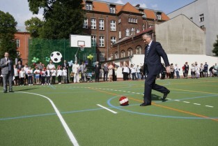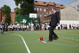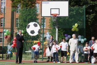 Otwarcie 16. boiska w ramach programu "Junior Gdańsk 2012" z udziałem Prezydenta Gdańska Pawła Adamowicza. Gdańsk, ul. Łąkowa, Szkoła Podstawowa nr 4