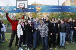 Otwarcie boiska w ramach programu "Junior Gdańsk 2012". Gdańsk Chełm, Zespół Szkół Ogólnokształcących nr 7 przy ul. Chałubińskiego.