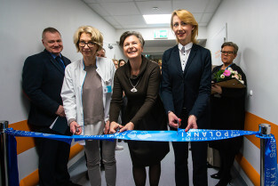 Szpital Dziecięcy Polanki im. Macieja Płażyńskiego w Gdańsku, uroczyste otwarcie nowych oddziałów: Pediatrii i Mukowiscydozy oraz Anestezjologii i Intensywnej Terapii. Nz. m.in. Agnieszka Kapała-Sokalska - wicemarszałek województwa pomorskiego, Małgorzata Paszkowicz - Prezes Zarządu Szpitala, Ewa Sapiejka Kierownik odziału Pediatrii i Mukowiscydozy, na odziale Pediatrii i Mukowiscydozy