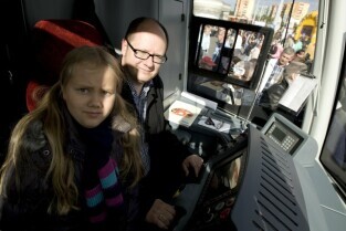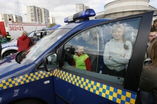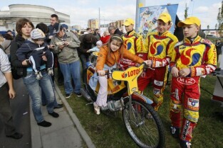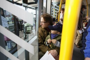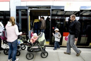 Festyn "Tramwaje dla Gdańska", podczas którego zaprezentowano dwa nowe tramwaje 120NaG SWING. Do końca 2011r. na gdańskich torach będzie ich jeździć 35 sztuk. Gdańsk, pętla tramwajowa na Chełmie. Na pierwszy przystanek tramwaj wjechał kierowany osobiście przez Prezydenta Gdańska Pawła Adamowicza. Nz. z córką Antoniną