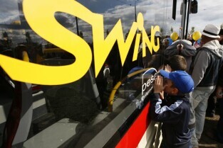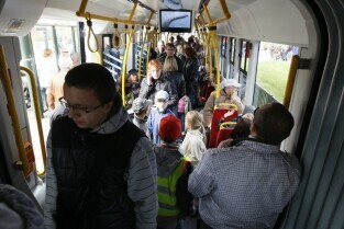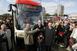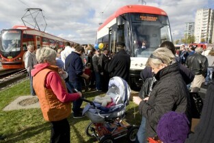 Festyn "Tramwaje dla Gdańska", podczas którego zaprezentowano dwa nowe tramwaje 120NaG SWING. Do końca 2011r. na gdańskich torach będzie ich jeździć 35 sztuk. Gdańsk, pętla tramwajowa na Chełmie.