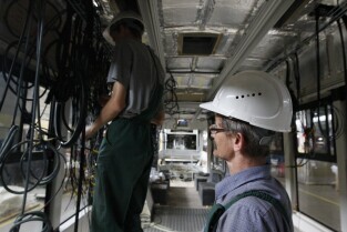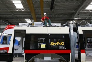 Dziennikarze i urzędnicy wraz z Prezydentem Gdańska Pawłem Adamowiczem, odwiedziła bydgoską fabrykę PESA, w której montowane są tramwaje 120NaG "Swing", których 35 szt. w krótce ma jeździć po gdańskich torach