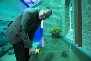 Wielkie Otwarcie pięciu nowych interaktywnych wystaw w Centrum Hewelianum. Nz. Prezydent Gdańska Paweł Adamowicz
