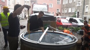 Przy ul. Dzianej w Gdańsku stanęły trzy nowoczesne pojemniki na odpady. Zastąpiły one stojące tu dotąd tradycyjne śmietniki. Nowe estetyczne pojemniki wyposażone zostały także w system monitorujący aktualny stan zapełnienia pojemnika dzięki wykorzystaniu technologii GPRS.