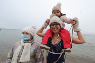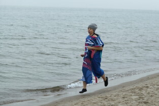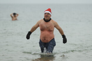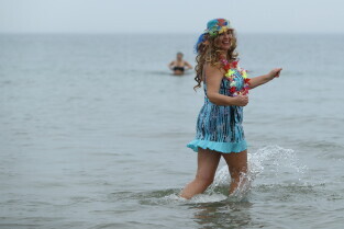 Gdańsk, plaża w Jelitkowie. Noworoczna Kąpiel Morsów.