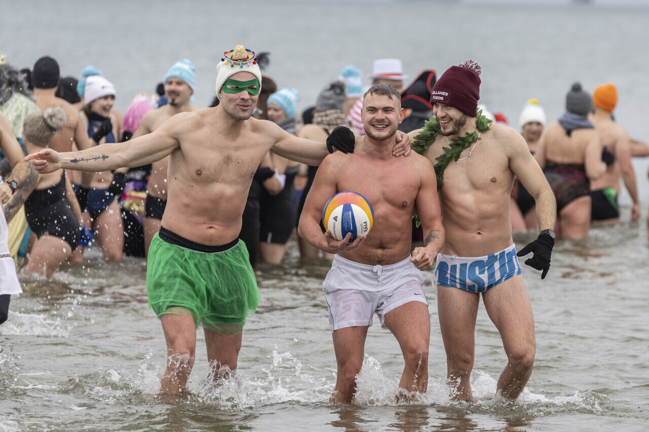 Gdańsk. Noworoczna kąpiel Gdańskich Morsów.
