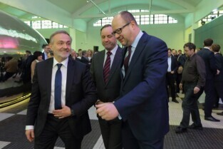Muzeum Emigracji w Gdyni. Noworoczne Spotkanie Metropolitalne 2016. Nz Wojciech Szczurek-Prezydent Gdyni, Mieczysław Struk-Marszałek Województwa Pomorskiego i Prezydent Gdańska Paweł Adamowicz.