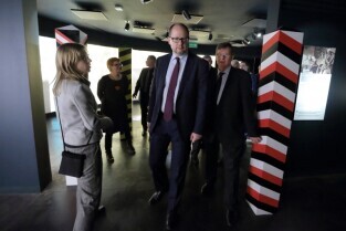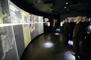 Muzeum Emigracji w Gdyni. Noworoczne Spotkanie Metropolitalne 2016. Prezydent Paweł Adamowicz wraz zaproszonymi gośćmi zwiedził wystawę stałą.