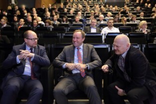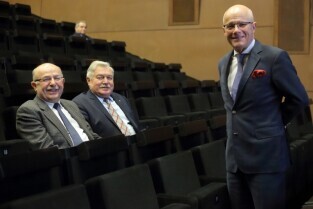 Europejskie Centrum Solidarności. Noworoczne spotkanie przedstawicieli gdańskiego biznesu. Nz Paweł Adamowicz-Prezydent Gdańska, Mieczysław Struk-Marszałek Województwa Pomorskiego i Wiesław Bielawski-Wiceprezydent Gdańska.
