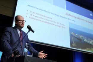 Europejskie Centrum Solidarności. Noworoczne spotkanie przedstawicieli gdańskiego biznesu. Nz Paweł Adamowicz-Prezydent Gdańska.