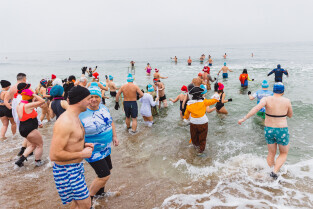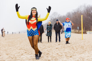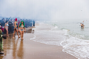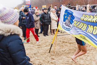 Gdańsk, plaża w Jelitkowie. Noworoczne morsowanie