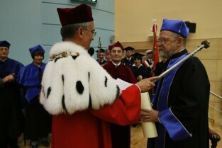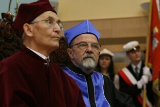 Wręczenie tytułu Doktora Honoris Causa prof. Jerzemu Brzezińskiemu (nz.) oraz Inauguracja Roku Akademickiego 2010/2011. Uniwersytet Gdański, WPiA. Po lewej Rektor UG Bernard Lammek
