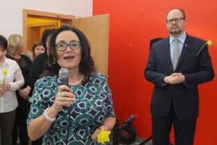 Gdańsk, otwarcie nowego Żłobka "Bursztynek" Nz Krystyna Konieczny-Dyrektor Gdańskiego Zespołu Żłobków i Prezydent Gdańska Paweł Adamowicz.