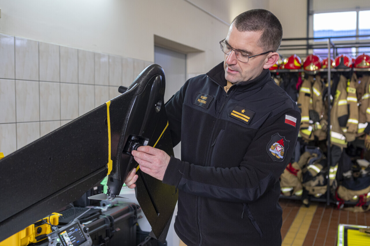 Gdańsk. Wojewoda Beata Rutkiewicz, Marszałek województwa pomorskiego Mieczysław Struk i Z-ca Prezydenta ds. mobilności i bezpieczeństwa, Piotr Borawski wzięli udział w przekazaniu nowego sprzętu ratowniczego w siedzibie Państwowej Straży Pożarnej na ul.Siennickiej
