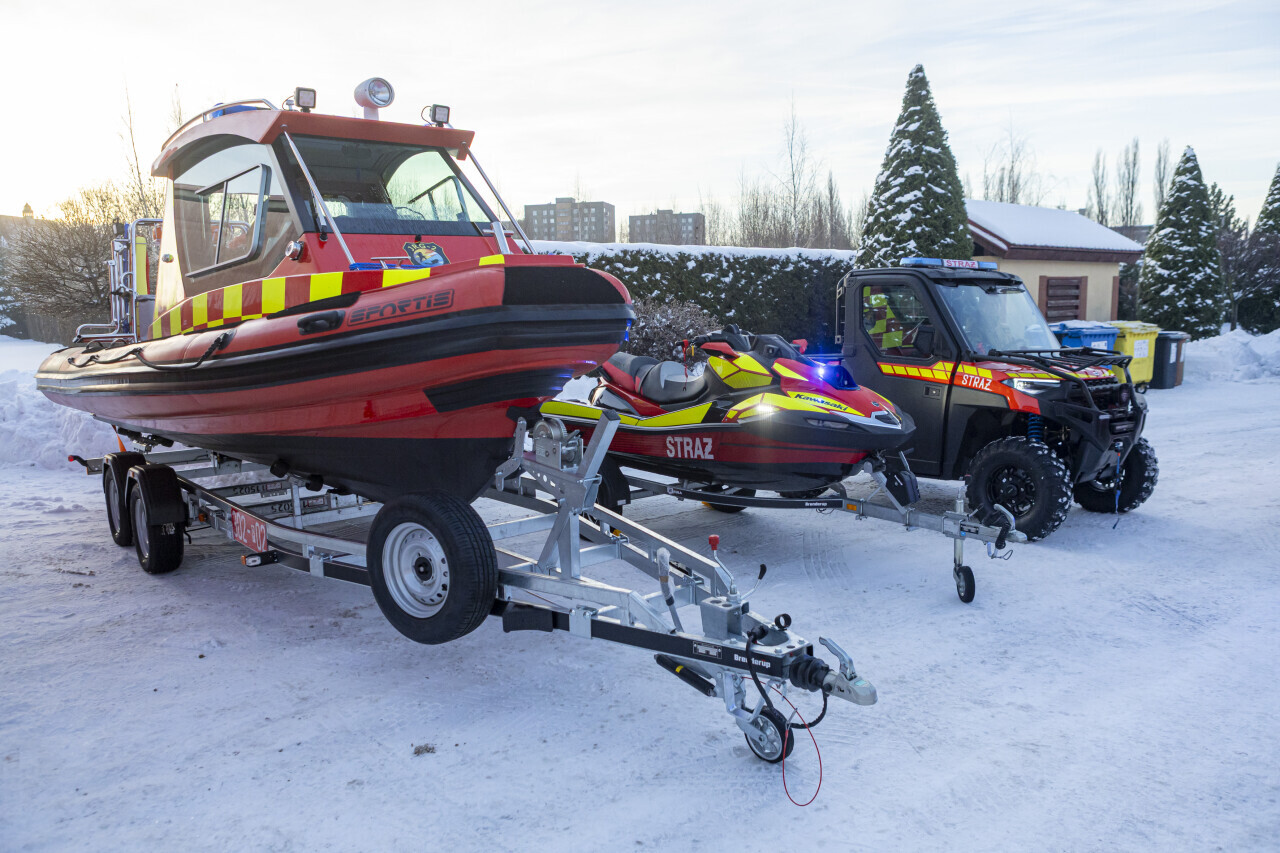 Gdańsk. Wojewoda Beata Rutkiewicz, Marszałek województwa pomorskiego Mieczysław Struk i Z-ca Prezydenta ds. mobilności i bezpieczeństwa, Piotr Borawski wzięli udział w przekazaniu nowego sprzętu ratowniczego w siedzibie Państwowej Straży Pożarnej na ul.Siennickiej