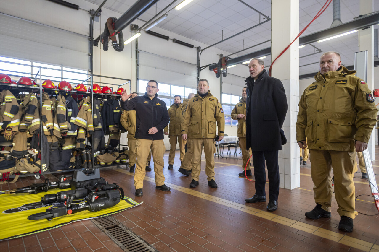 Gdańsk. Wojewoda Beata Rutkiewicz, Marszałek województwa pomorskiego Mieczysław Struk i Z-ca Prezydenta ds. mobilności i bezpieczeństwa, Piotr Borawski wzięli udział w przekazaniu nowego sprzętu ratowniczego w siedzibie Państwowej Straży Pożarnej na ul.Siennickiej