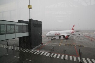 Gdańsk, Port Lotniczy im. Lecha Wałęsy. Nowo wybudowany Terminal nr 2. Nz. samolot na płycie postojowej
