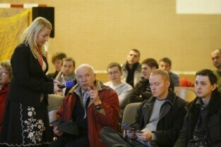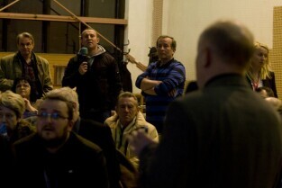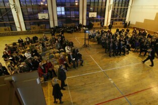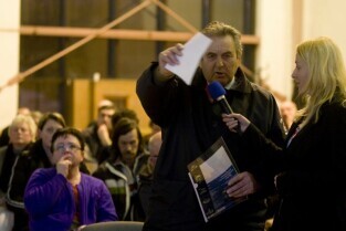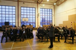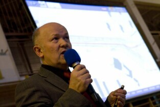 Spotkanie informacyjne poświęcone przedłużeniu linii tramwajowej z Chełmu do ul. Świętokrzyskiej oraz budowie ulicy Nowa Łódzka. Gdańsk Chełm, Szkoła Podstawowa nr 8. Nz. Janusz Łagowski z GIKE 2012