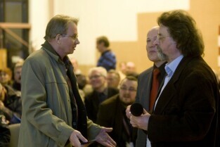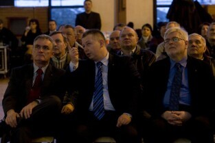 Spotkanie informacyjne poświęcone przedłużeniu linii tramwajowej z Chełmu do ul. Świętokrzyskiej oraz budowie ulicy Nowa Łódzka. Gdańsk Chełm, Szkoła Podstawowa nr 8. Nz. od lewej: Przewodniczący Rady Miasta Gdańska Bogdan Oleszek, z-ca Prezydenta Gdańska ds. polityki gospodarczej Andrzej Bojanowski, Przewodniczący Komisji Kultury i Sportu RMG Marek Bumblis