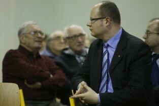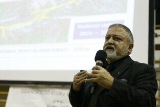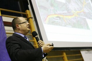Spotkanie informacyjne poświęcone rozbudowie środkowego odcinka Trasy Słowackiego. Gdańsk, Szkoła Podstawowa 27. Nz. Jan Kosiedowski - projektant Trasy Słowackiego