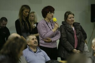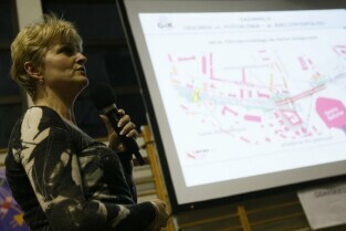 Spotkanie informacyjne poświęcone rozbudowie środkowego odcinka Trasy Słowackiego. Gdańsk, Szkoła Podstawowa 27. Nz. Barbara Bradke - Sobieniak ze spółki GIKE 2012