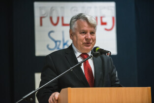 Gdańsk, SP 81. Obchody 100-lecia Szkoły Polskiej w Osowej. Nz. Wicemarszałek Senatu Bogdan Borusewicz