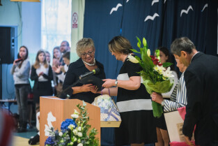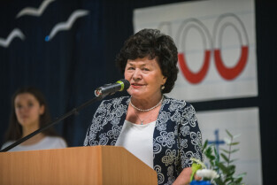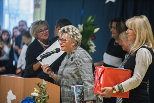 Gdańsk, SP 81. Obchody 100-lecia Szkoły Polskiej w Osowej. Nz. Urszula Szarmach była dyrektor placówki