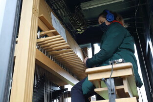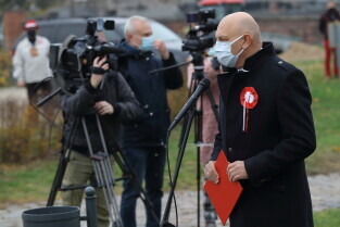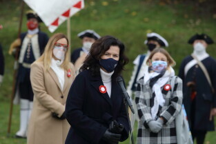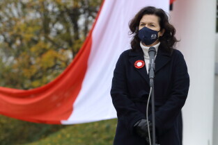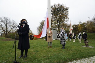 Gdańsk. Obchody 102. rocznicy odzyskania niepodległości. Wciągnięcie flagi państwowej na znajdujący się najwyższy w mieście maszt na Górze Gradowej. Nz. Prezydent Gdańska Aleksandra Dulkiewicz.