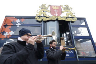 Gdańsk. Obchody 102. rocznicy odzyskania niepodległości. Wciągnięcie flagi państwowej na znajdujący się najwyższy w mieście maszt na Górze Gradowej. Nz. Prezydent Gdańska Aleksandra Dulkiewicz, Przewodnicząca Rady Miasta Gdańska Agnieszka Owczarczak i Radna Gdańska Beata Dunajewska.