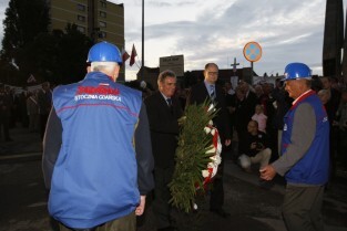 Oficjalne obchody 31. rocznicy podpisania Porozumień Sierpniowych w Gdańsku. Przemarsz pod Pomnik Poległych Stoczniowców