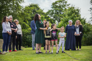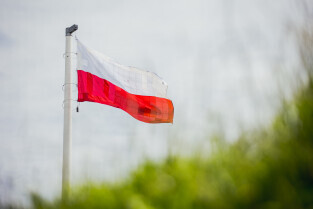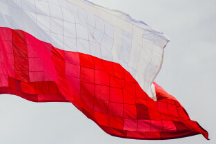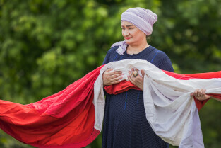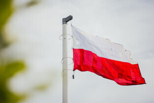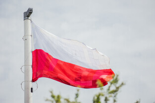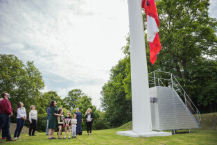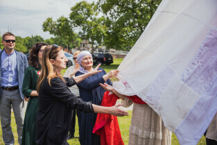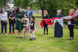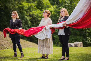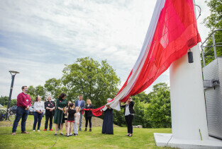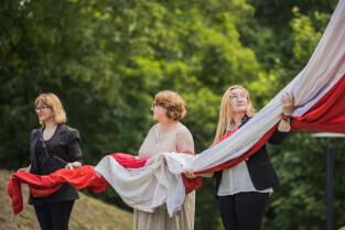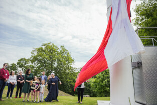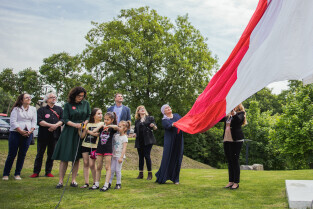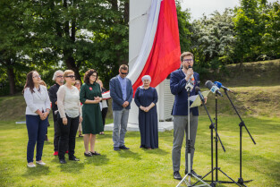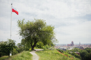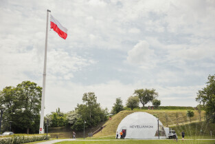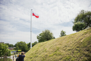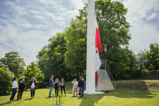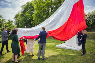 Gdańsk, Góra Gradowa. Obchody 4 czerwca. Uroczyste zawieszenie patchworkowej flagi