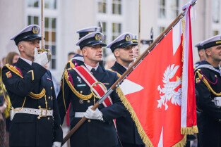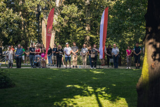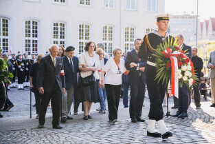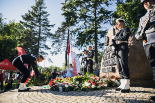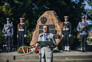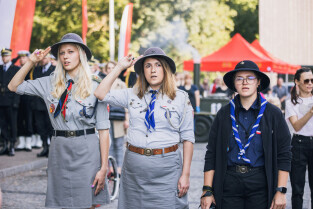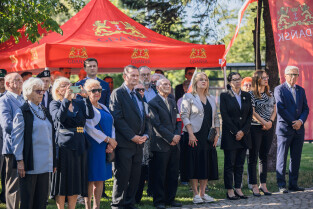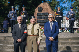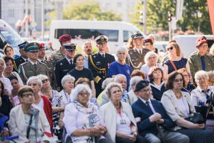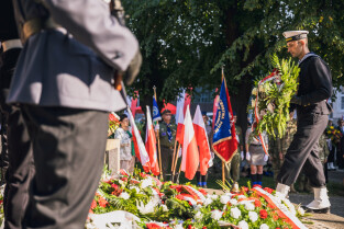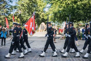 Gdańsk. Obchody 78. rocznicy wybuchu Powstania Warszawskiego. Uroczystość na Targu Rakowym, przy obelisku upamiętniającym Polskie Państwo Podziemne.
