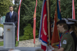 Obchody 86. rocznicy wybuchu II wojny światowej.Nz. Uroczystość na placu Obrońców Poczty Polskie