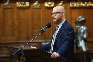 Gdańsk, Dwór Artusa. Obchody Dnia Edukacji Narodowej. Nz. Zastępca Dyrektora ds. edukacji - Grzegorz Kryger.