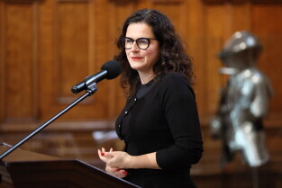 Gdańsk, Dwór Artusa. Obchody Dnia Edukacji Narodowej. Nz. Prezydent Gdańska Aleksandra Dulkiewicz.