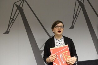 Gdańsk, Europejskie Centrum Solidarności. Obchody Dnia Praw Człowieka. Odczytanie Apelu Gdańskiej Rady ds. Równego Traktowania z okazji Dnia Praw Człowieka. Nz. Anna Maria Miler – członek GRRT.