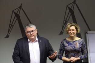 Gdańsk, Europejskie Centrum Solidarności. Obchody Dnia Praw Człowieka. Odczytanie Apelu Gdańskiej Rady ds. Równego Traktowania z okazji Dnia Praw Człowieka. Nz. Wiceprezydent Gdańska Piotr Kowalczuk i Anna Strzałkowska – Współprzewodnicząca GRRT.