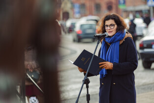 Gdańsk. Obchody Międzynarodowego Dnia Pamięci o Ofiarach Holocaustu. Nz. Aleksandra Dulkiewicz, Prezydent Miasta Gdańska