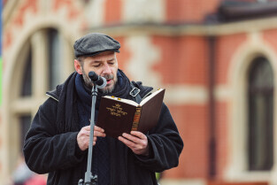 Gdańsk. Obchody Międzynarodowego Dnia Pamięci o Ofiarach Holocaustu. Nz. Michał Rudzki, wiceprzewodniczący Gminy Żydowskiej w Gdańsku