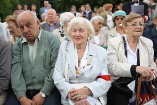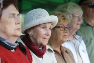 Gdańsk, Cmentarz Łostowicki, pomnik Golgoty Wschodu. Uroczyste Obchody Światowego Dnia Sybiraka i 77 rocznicy agresji sowieckiej na Polskę. Nz Irena Witort-Gdański Oddział Związku Sybiraków.
