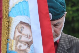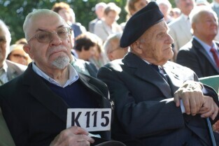Gdańsk, Cmentarz Łostowicki, pomnik Golgoty Wschodu. Uroczyste Obchody Światowego Dnia Sybiraka i 77 rocznicy agresji sowieckiej na Polskę. Nz Kordian Borejko-Prezes Związku Sybiraków.