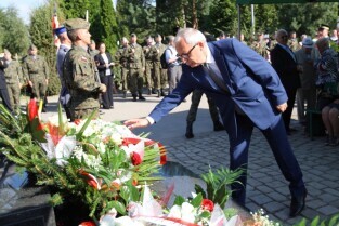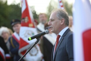 Gdańsk, Cmentarz Łostowicki, pomnik Golgoty Wschodu. Uroczyste Obchody Światowego Dnia Sybiraka i 77 rocznicy agresji sowieckiej na Polskę. Nz Wojewoda Pomorski Dariusz Drelich.
