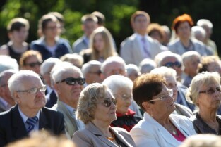 Gdańsk, Cmentarz Łostowicki, pomnik Golgoty Wschodu. Uroczyste Obchody Światowego Dnia Sybiraka i 77 rocznicy agresji sowieckiej na Polskę. Nz Modlitwę poprowadził Biskup Wiesław Szlachetka.