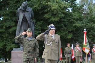 Gdańsk, Pomnik Marszałka Józefa Piłsudskiego. Obchody Święta Wojska Polskiego oraz 96 rocznicy Bitwy Warszawskiej. Nz Dowódca Garnizonu Gdańsk płk Adam Jakimowicz.