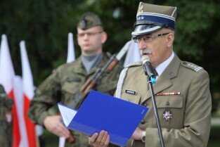 Gdańsk, Pomnik Marszałka Józefa Piłsudskiego. Obchody Święta Wojska Polskiego oraz 96 rocznicy Bitwy Warszawskiej. Nz Ryszard Świlski-członek Zarządu Województwa Pomorskiego, Radny.