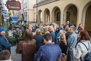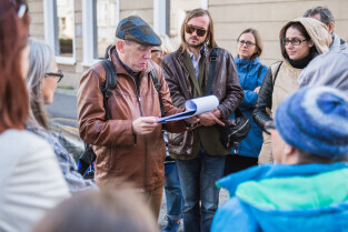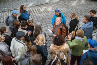 Gdańsk. Oblicza Gdańskich Tożsamości - spacer śladami wielokulturowości Gdańska. Nz. przewodnik Prof. Cezary Obracht-Prondzyński