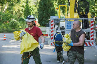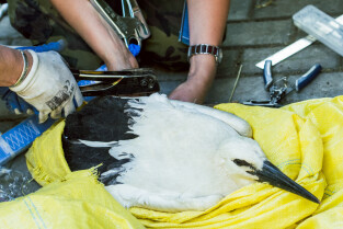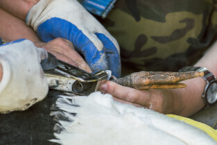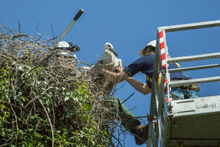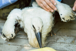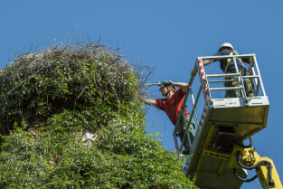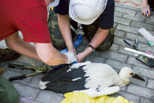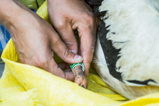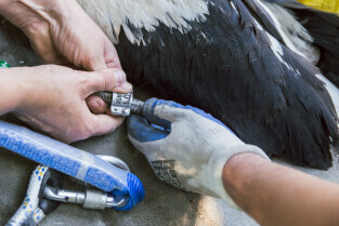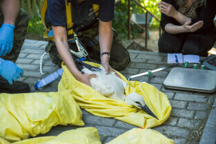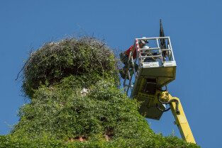 Gdańsk, ul. Karwieńska. Obrączkowanie bocianów w oliwskim ZOO