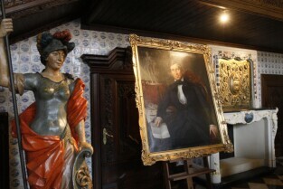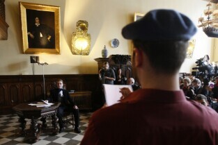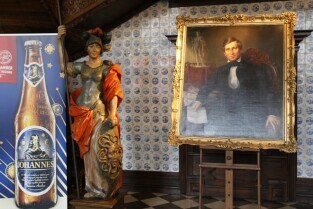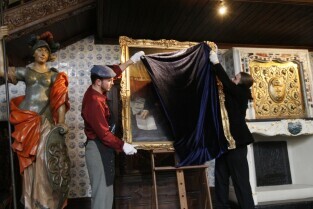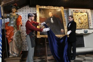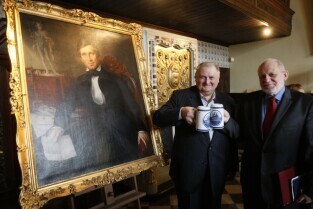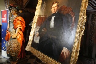 Gdańsk, Dwór Artusa. Prezentacja obrazu z poł. XIX w. "Portret kupca gdańskiego" autorstwa Louisa Sy, zakupionego dla Muzeum Historycznego Miasta Gdańska przez browar Amber