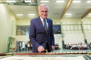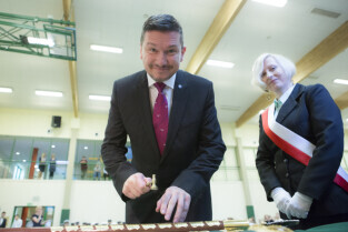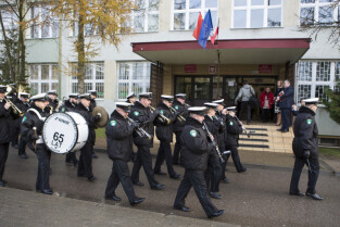 Uroczystość nadania imienia majora Mieczysława Słabego Szkole Podstawowej nr 7 w Gdańsku Złotej Karczmie przy ul. Mjr. Słabego 6. Nz. Z-ca Prezydenta Gdańska Piotr Kowalczuk